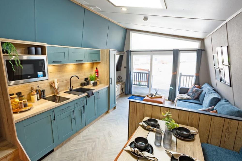 Each lodge features its own private spa garden complete with hot tub beneath a louvred pergola, outdoor kitchen and cosy lounge space — perfect for relaxing evenings under the stars. Inside, you’ll find a beautifully designed open-plan living area, a fully equipped kitchen and comfortable bedrooms with premium linens.
